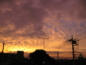 今日の夕方はこんな空でした明日は台風が来る予報なのに何故か夕焼けでもいつもの夕焼けとはちょっと違う気が・・・だんだん赤くなってきたホントに真っ赤だっ もしかしたら、何かの前ぶれなのか・・・(怖)