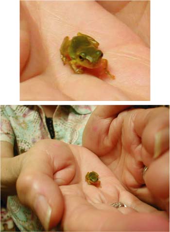 たいへんご無沙汰しました来客やら体調不良やら忙しかったりでパソコン前に座ることがなかなか出来ませんでしたほんとに久しぶりの更新です8月6日に姫路の実家から父と母そして姫路に住む妹と子供が2人大阪に住む妹と合わせて6人が遊びに来てくれました久しぶりににぎやかになった、maririnn*家でしたわいわいと大勢で夕夜を食べている時に、母がソファの背もたれにいる小さいものを発見目の悪いmaririnn*には小さい点でしか見えなかったのですがなんと小さい小さいカエルの赤ちゃんでした。(でもカエルの赤ちゃんはオタマジャクシか?)カエル好きのmaririnn*にはたまらない一品じゃなくて1匹ですなかなかじっとしてない小さなお客さんをやっとの事で写真撮影飛び跳ねる度に大騒ぎ、誰かが踏み潰さないかヒヤヒヤでしたあんまりかわいいので、飼ってみたいmaririnn*ですがとてもエサを調達できないので断念して外に放しましたでも昨日ウッドデッキの植木鉢の所に居るのを発見どうやらこのあたりに住んでいるみたいです。うれしい~無事に大きくなってほしいな+++++ かわいいカエルのアクセサリー発見 +++++ お気に入りが見つかったら写真を してね。お店に行くよ