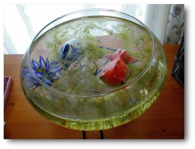 我が家のリビングの窓際に置いてあるガラス鉢です水草に金魚に睡蓮の花、涼しげでしょ実はこれ増殖している、赤ちゃんメダカの為のメダカ鉢なんです!見えないかな~○の中に2匹いるんだけど 見えた?今、この中にはたぶん20匹ぐらいの赤ちゃんメダカがいます。まだまだ毎日別のメダカ鉢で生まれてますこれがみんな大きくなったらただいま我が家のメダカ鉢大きいのが2鉢・中くらいが1鉢どれも定員オーバー気味もう増やせないんだけど・・・・・どうしたものかな~