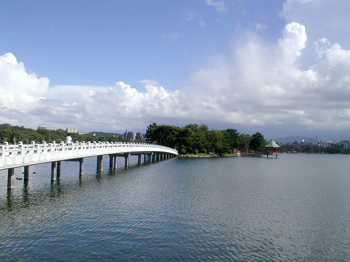 娘のpikorinnに会いに福岡に行った時一度ゆっくり行ってみたいと思いながらなかなか行けなかった大濠公園に行きましたまだまだ暑い時だったので、日陰を求めながらの散策でした。この公園の濠(ほり)は、もとは福岡城の一部だったそうで周囲2kmの池を中心とする公園です。空がとても綺麗でした 橋の先に見えているのは浮見堂です。柳島にある展望所で雄大な大濠公園の眺めと落ち着いた日本庭園の雰囲気を楽しめます。公園内には大きな鯉から小さい魚・カメ・オシドリ・鳩など生き物がたくさんいましたよ。橋を渡っているのは、ヨッシ君とu-tannです。白鷺でしょうか?日陰で一休みしてました懐かしい白鳥ボート、今度はこれに乗りたいな今日はあまり時間が無かったのでゆっくりは出来なかったけどもう一度行きたい素敵な公園でした。