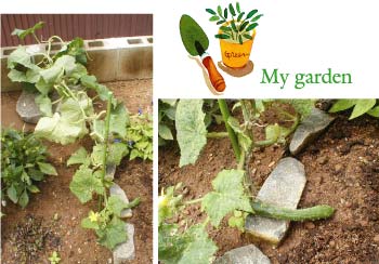 6月28日のブログでご紹介した勝手に家庭菜園!今回はきゅうりの様子を写真に撮りました花壇に出て来た、元気なきゅうりの苗3本を畑に移した後にまた1本出て来てました畑に移した苗はそれぞれ順調に大きくなり、買ってきた苗と変わらずたくさんのきゅうりを実らせました。そして新しく出て来た苗は、もういらないと畑行きはヨッシー君から丁重に断られてしまったので仕方なく花壇に放置してました。どんどんツルを伸ばし、こんな所で生ってます!まだ赤ちゃんきゅうりです行き場が無くなったので、向こうに垂らしてたらここでも、大きく育ってます。もうすぐ収穫できそうですちゃんとツルを登らせる棒を立てようか?でも花壇だからどうしようと思ってるうちにどんどん大きくなってしまってちょっと可愛そうだったかな勝手に家庭菜園、今度は何が出て来るのかなちょっと楽しみ+++++ 本でも読んで勉強してみようかな +++++