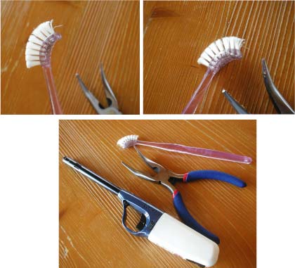 今日は最近作った、便利お掃除グッズをご紹介します隅っこのお掃除ってなかなかキレイにならないですよね浴室の扉・レール溝・目地・蛇口の根元・サッシの溝などの隅っこまたお台所でもタッパー・タッパーの蓋・レンジ台などの隅などそれで作ってみました材料は使い古しの歯ブラシのリサイクルです!歯ブラシでいつもレールの溝とか蛇口の根元などお掃除してたんですけどいつも隅っこがどうしてもきれいにならなくてイライラしてました歯ブラシの先までブラシがあればいいのに~と思っていた時にひらめきました。道具はチャカマン(ライターやガスの火でもOK)・先曲ラジオペンチだけ作り方は簡単もうわかりますよね歯ブラシの先の裏を暖めて柔らかくなったところで先曲ラジオペンチでいい具合のところまで曲げれば出来上がりブラシの部分が燃えないように、火力には気を付けてくださいね!何本か作って、用途別に使ってます。なかなか使いやすいですよ今、楽天で調べてみたら似たような物ありました!考える事は一緒ですよね+++++++++++++++++++++++++++Bean's Life どこでも便利ブラシ