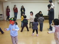 キッズルームで豆まき去年と同様まいては集めてを何回繰り返したことだろう?存分に楽しんだ後は、みんなで掃除!!床拭きレースで綺麗になりました☆