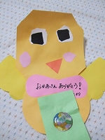 幼稚園で作った母の日のプレゼント こちらも幼稚園で作った作品 カワイイヒヨコのメッセージとブローチ こいのぼり ブローチはKAZが色を塗ったそうです 綺麗な色で上手にできたね☆ステキなプレゼントありがとう^^