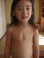 AMIは背中・おしり・頭の発疹が多かったKAZは胸・お腹・顔AMIと違って前部分に多いあと、口の中・おちんちんにも1つできてましたAMIより軽い気がします熱もないし普通に元気です