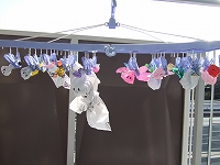 AMIの大好きな男の子のお友達ファミリーが子供達を動物園に連れて行ってくれると約束していた今日しかし、予報どおり午前中は雨降り動物園は明日に延期明るく晴れだした午後ママがベランダに出るとたくさんのてるてる坊主が洗濯ばさみに挟まれていましたその数26個金色、ピンク、チラシ、透明袋、他・・・カワイイ^^色んな紙で作られていましたそして「ほんとに晴れた~」とちょっと驚き気味でベランダに出て二人で手を合わせててるてる坊主にお礼のお祈りをしていました明日も晴れますように☆