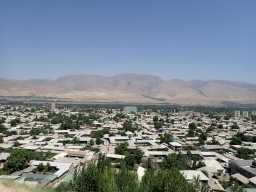 岡の上から眺めるペンジケントの町、就中如何にもシルクロードのと言う風情の山、そしてオアシス都市らしいザラフシャン川と言う景色は、実物を見たくて此処まで来た親父には感無量の光景でありました♪