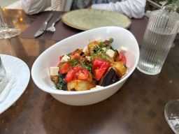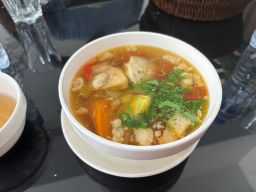 食事は多くは要らないと言う事もあり、各人に供されたスープと初日の夜にも食べた茄子の蜂蜜がけのサラダでございます。