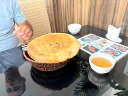 席に座ると大きなノンが供されまして、ドライバーがてきぱきと小さくちぎってくれたのが、家でもそうしているんだろうなぁと言う感じで良いものを拝見させて頂きました♪