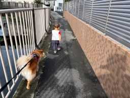 今日のラリーちゃんの朝んぽは、お孫ちゃんと一緒でございます♪