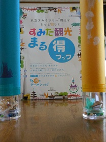 今日は、朝から雨模様でしたが、我が家は以前から14日は 東京の新名所『東京スカイツリー』に行くことを予定していたので、 予定通り午前11時に出発、15分程でスカイツリーに到着しましたが、 想像通り 駐車場は満車でした。が、10分も歩けば余裕で停められました。 スカイツリーには行きましたが、展望台へ昇るのが目的では無く、 お目当てはソラマチでした。子供たちのお気に入りのショップが あるらしく・・・。 その後は、5階へ上がり、『すみだまち処』へ。 そこで、やっと出逢えました、『配財プロジェクト』に。 子供たちもやりたいと言うので、2人分、写真は撮り忘れました。テㇸ? 帰宅後も、中身を変えて楽しんでいました。 では、またブログでお逢いしましょう。 製造部 G・・・でした。
