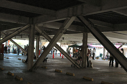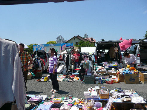 2週間前のことですがフリマへ行ってきました~ケイテはヒート中、マロンは人が多いと思うので大型犬は迷惑になったらいけないのでお留守番。私とアリスで出かけました~実は実家の母が出店するというので邪魔(?)いいえ!お手伝いに・・・場所は小倉の住宅展示場内で40~50店位出店してました。この日はすごく天気が良くて暑かったです ひゃ~、あつい~~アリスは母から冷たい水をもらっていよいよお店番です。看板犬アリスさん いらっしゃいませ~~♪後方ですが看板犬になって座ってたらお客さんから可愛いね~~な~んて言われて上機嫌でした10分ほどしたら看板犬のお仕事もそこそこにして遊びに行きたいと私を見て目をウルウルさせてるので休憩して展示場内をお散歩することにしました とっとっとっとっ バーバパパファミリー~♪アリスも一緒に並ばせて写真を撮ろうとしたらアリスが異常に怖がって逃げ回るのでNGですアリスは水以外はめったに怖がった事がなかったのでびっくり~~バーパパから離れた所からパチリ場内を回ってると展示場から木下サーカスのテントが見えました~フリマから帰ってお留守番してたマロン&ケイティにおやつをあげました。 あそぶでしゅ~~ケイティは留守番中、マロンと遊びたかったみたいで自分はゲージの中だったもんだから出せ!出せ!と、うるさくしてましたゲージから出してやると即行マロンにくっついてました~久々にフリマを楽しみました~アリス、お疲れさま~~