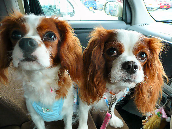GW最後の日、昨日は犬吉の撮影会が大野城サテイであったので行ってきました~パパさんは仕事だったので私&アリス&ケイティで参加しました。マロンは可哀想だけどお留守番です マロン、ごめんね撮影会は立体駐車場(2F)でありました。 ここはどこでちゅか?撮影の予約時間より1時間も早く到着してしまったのでキョロキョロしてるとキャバ友を発見ノアくん&ライフくん。おそろいのキャラクターTシャツがステキです☆健太郎くん。Leeのパンツがお似合いでかっこいい~☆ラテくん。爽やかな色のボーダーのTシャツがとてもお似合いで~す☆リードとお揃いなのかな?ショパンくん。イケメンです☆ ケイティがラブラブ光線を送ってました~トライくん。パパさんに抱っこされて気持ちが良さそうです☆RIAちゃん。おとなしくてかわいい~☆ レディちゃん、げんきだった~?レディちゃん。スリムでとてもかわいいで~す☆ アリスがすぐにご挨拶に行ってました~ エルフちゃん&シェリちゃん親子。色違いのワンピースがとてもかわいい~☆ シェリちゃん、ケイティでちゅよ~。 (手前がケイティ)シェリちゃんとケイティは同い年でお誕生日が数日しか違わないので~すこれからも仲良くしてくださいね犬吉の撮影の方はケイティがちゃんとお座りできなかったけど何とかOKでした きゃばりーずのサークル撮影も無事に終了して、帰ろうと思った時ケイティの様子が変だったので抱っこしてみると私の腕に血が・・・!!急いで車に戻って何処を怪我したのか確認したら、なんとオマタからうっすら出血~!!初ヒートだ~~そーいえば確かアリスも7ヶ月の頃に初ヒートでした。まだまだパピーだと思ってたのに、ついに女の子になっちゃいましたよ~ ヘヘヘッ!アリスねえちゃんとおなじおんなのこでちゅ夜は大きなササミでお祝いしました~さて、お転婆ケイティはどんな女の子になるのでしょうか楽しみです