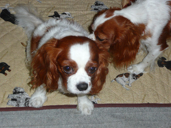 先日、ネットでハンドメイド犬服・雑貨 Team T・R・Bというキャバリアを飼われてる方のお店でスヌード&おやつを注文しました~スヌードはケイティ用、おやつは鳥のトサカで硬そうなのでマロンとアリス用です。早速、ケイティにスヌード装着~。 にあうでしゅか?きゃ~~、かわゆいよぉ~実はこのスヌード、キャバ友達の健ママさん作なのです! (お店には数人の作家さんがいて健ママさんはその中の1人です)さすがにきれいに出来ててケイティにぴったり~♪♪ ねむいでしゅ・・・。昼寝中、無理やり起こしたのでちょっと眠そうです夕方になって鳥のトサカを持ってみんなでお散歩へ行きました~マロンとアリスは、はりきって車から外を見てま~す はやく、ちょうだいよ~~! トサカをフリフリすると・・・寄ってきた~、寄ってきたぁ~~~!マロンとアリスはガン見しております あ~~、おいしかった~美味しい匂いがするのかケイティがマロンをクンクンしてました~鳥コラーゲンで女っぷりを上げなきゃね~~。マロン・アリス~