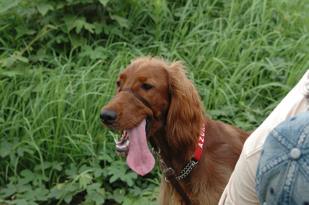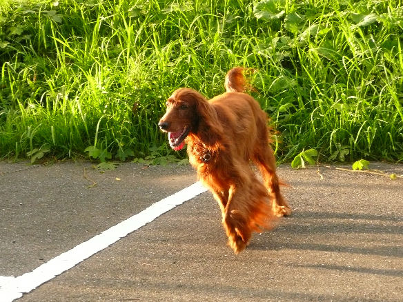 昨日はいつものグランドでお友達と待ち合わせ~~そのお友達は・・・ ジャ~~ン♪ あずきちゃんです(アイリッシュ・セター 1歳8ヶ月)あずきちゃん、大きくなってる~~手・足も長く、カッコイイよぉ~~マロンとあまり変わらなくなってました~。会えて嬉しい~~~最近の撮影会には私&アリス&ケイティで参加することが多かったのであずきちゃんが撮影会に来ててもマロンとはなかなか会うことができなかったのでマロンもあずきちゃんに会えて嬉しそう~♪ あずきちゃん、ひさしぶり~~。 あずきちゃん、こんにちは~。アリスも嬉しそうです。うちのパパさんも嬉しくてあずきちゃんのリードを持たせてもらってあずきちゃんを触りまくってました~お散歩を楽しんでる3ワンズ! おっ? 誰かさんがいないぞぉ~~ ケイティちゃん、あそぼう~♪あずきちゃんの視線の先にケイティがたたずんでます。ケイティを呼んでもなかなか来ようとはしません どうしょう~ ここにいるでしゅ。ケイティはマロン以外の大型犬にはめったに会うことがないのでとてもビックリしてるんです。(意外とビビリなのです)そのうちマロンとあずきちゃんは遊び始めました~。マロンとあずきちゃんは仲良し~☆その姿を上の草むらから覗いてるケイティ。あずきちゃんが気になるケイティですみんなで記念撮影をしょうと、4ワンズ並ばせたかったのですがケイティが上から動かないのでそのままの状態でパチリ☆☆まあ、OKですかね~今度会う時はケイティもちゃんと横に並んで撮れるといいなぁ~。まめころんさん(あずきちゃんのママ)遠征してくれてありがとうございましたそして美味しい手作りクッキー&牛骨、3ワンズ大喜びで食べてました~アリママbagも大活躍させてくださいね。今度は私が遠征して行きますので、また遊んでくださいね~にほんブログ村にほんブログ村にほんブログ村