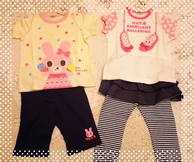 ポイント5倍期間にTシャツフェアに参加しようと思い、買うものは決まってたのですがこちらのパンツがまさかのサイズ切れです~【エントリーでポイント5倍】【ミキハウス】トラベルうさこ♪6分丈パンツ(80cm・90cm)風邪でダウンしてる間に出遅れました一緒にこちらのTシャツを購入しようと思っていたのですが、パンツが入荷してから一緒にポチろうと思います【エントリーでポイント5倍】【ミキハウス】ワールドトラベル☆キャラクター半袖Tシャツ(80cm・90cm)なので今回はホットビ攻め!?で娘が保育園に着ていくお洋服を購入しました♪Tシャツ2枚とボトムを2枚ホットビはきっとセールになるでしょうが、いつもセールを忘れる&ホットビは元値が安いのでセールになっててもそんなに精神的ダメージはこない!というわけで今回購入しました最近、ホットビのデザインが結構好きです安いというのも魅力的です早く保育園に元気に通って欲しいなぁ~お着替え時のコーディネーターは先生なので、どんなコーディネートをされるのか楽しみです
