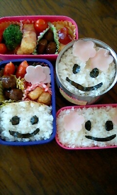 今日は息子の遠足。ということで、お弁当作りました。とはいうものの、お弁当箱が小さいので昨日遠足の為に買ってきた食材のほんの1部しか入れられませんでした。それでも、息子のオーダーしたミートボールはちゃんと入れましたよそして、パパとママも同じものを作りました。3人分のスマイルです大したものは入ってないけど、気持ちは伝わったかな?