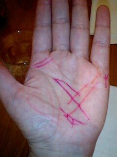 19日(日)は、神戸三宮で開催された、折原えなちゃんの 美人塾にお邪魔しました。 今回の美人塾は、 メイク+学びごと(講演など)の二本立て。 今回のゲストは、手相を見てくださる華与さん。 手相、奥深し・・・ 手相すなわち、手のシワは、最近では、 大脳生理学で、脳の特徴を表していることが分かってきています。 気づきいっぱいでした。 なかでも、面白かったのは、【マスカケ線】。 わたしには、左手に、100人に1・2人のマスカケ線があるらしい。 頭脳線と、感情線がくっついて、横一本線になっているものを、 マスカケ線と言うそう。 右手だったら「て」という文字が出ます。 左手だったらその逆の線が出ます。 この線の持ち主は、カリスマ性があるそう。へぇ~。 成功したら大成功、失敗したら大失敗。 その両極端な人生を歩む。 すこし前までは、結構それに憧れていたのだけど、 最近、それは、もういいや~という気がしています。 カリスマとよばれる人は、 ただ、「とても心豊かな人」ということを感じられる機会が多いの。 愛から、始まる人。 でも、家康や秀吉などの戦国武将にあった線と 聞いて、なんとなく納得。 過去に、刃を手で握ったあとのような気がする。 左手は、潜在意識下でもっているものだものね。 そして、右手には、【神秘十字線】がでていました。 頭脳線と感情線の間に、横にはしる線と運命線で、 クロスする十字の線を神秘十字線といいます。 ある人もない人もいます。 華与さんには、霊感が強いとあらわれるそう。災難をよけたり、事故等にあっても最小限ですんでみたりとか 間一髪助かった、先祖の徳で助けられたりとか 守られている相だということのよう。 ご先祖様、ありがとう♪ 【旅行線】 海外にもご縁があるそう♪ 生命線の下部から、月丘(手のひらの下部、小指側)に向けて 出る線を「旅行線」と呼び、別名海外旅行線と呼ばれています。 この線の持ち主は、海外に縁のある人が多く活動的。 初めての土地・海外にもすぐに適応できるでしょう。 やった~♪ そして、華与さんから、「この線上に、フィッシュが。」と。 えっ!? フィッシュとは、お魚の形をした、手相のこと。 「出逢いが、海外にあるかも・・・」と。 えっ! 英語、勉強しなきゃ~☆ ★主要三本線は、生命線、頭脳線、感情線。 わたしは、生命線、頭脳線、感情線、それぞれ2本 でていました。 どういうことかと言うと、 副生命線、副頭脳線、副感情線があるの。 生命力があり、頭脳がよく、愛情深い・・・らしい☆ 頭脳線は、さらに三本にわかれ、 理数系、バランス感覚、芸術感覚に優れているらしい。 理数系!? ここは、とっても疑問です(笑)。 ・・・どれだけ、すばらしいことを言ってくれるのか・・・と 思うほどでしたが、 人に、何かを伝えるときの伝え方、とても勉強になりました。 そして、わたしが大切にしなければ、ならないところは、 ・・・ナイショ♪ やっぱり、自分の記録にかいておこ。 ・わたし自身が、感情をコントロールすること。 ・思考を悲しみとつなげないこと。 ・愛深さから、人を導くのは、入り口まで。 そこで、選ぶのも、選ばないのも、本人の選択。 (ちょっと前の自分(感情がんじがらめ)に似たタイプの人を 見ると、なんとかしてあげたくなって、関わりすぎて、 自分のエネルギーがダウンするみたい。 共依存の関係を生み出すよう。 どうでもいいことに時間を費やすのも×。) 最近のメッセージは、 なんだか、共通してきました。 意識をひろげること。 その人を信じること。 イコールの関係を、自分のなかにもつこと。