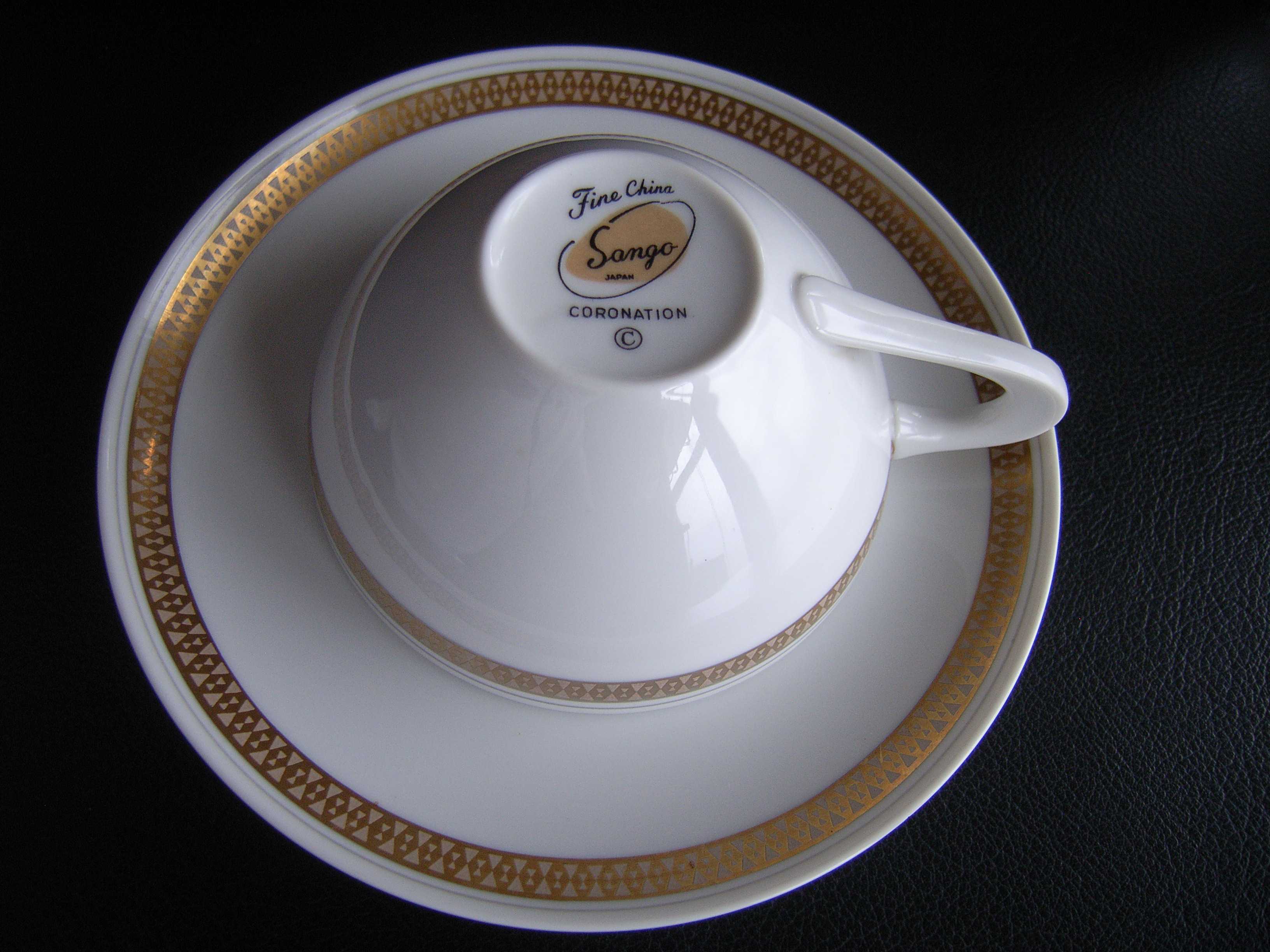 カップ裏面はバックスタンプと意匠パターンの名前「CORONATION」、FineChinaの記載。