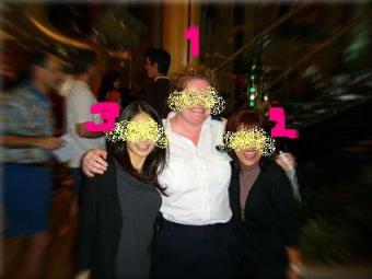 こんにちは!&こんばんは!昨日のMy Blogでは・・・かつしちーさんのネタをパクって『探せ』をやってしまいました。お付き合い下さった方々及び読んで下さった皆様に感謝!さて~今、いよいよ禁断のベールが開かれることに~~~♪・・・・・・・・・・~って、勿体ぶってもショウガナイっすね。1番は、そう。私の大事な船乗り仲間のJulie=ジュリーさん。3番は、先日華奢なのに威風堂々な花嫁ぶりを見せたM姫。という事で、正解は2番!タネさん、ROSSOクンおめでとう♪おふたりには、カナダはバンクーバーにいらっしゃった折~心を込めて(?)24時間密着ガイドをさせていただきます♪Marsworldの実験料理付きっす☆彡 (爆爆!)↑ちっとも、サプライズでもギフトでもないやねぇ~ 汗;;・・・・時に、誰も3番とは、言ってくれなかったなぁ。。。ま、シャレにならんしなぁ。。。さて気を取り直して。ここで、エーイ大判振る舞い。私の自画像大公開♪↓・・・・・・・・・怒゛・・・ですよねぇ~~~では、これで↓Radianceの船内にて。デッキチェアーに座って気取ってみたものの・・・サングラスがさ。ミラーだったのね。で、なんだかヘンに反射して。これぢゃー、牛乳瓶の底眼鏡になっているぢゃぁないか!結局、お笑いになってしまった。スマン。皆様。。。・・・しかし、これぢゃあちっとも顔が分らん!なのだが・・・・はたしてお見せしていいものなのかどうか。。。そのうち・・・あるかも ?ハタラクヒトネタ研修真っ盛り。お昼を食べる時間もギリギリ!もう少しで、ハラペコ怪獣が火を噴きそうになった。退社する同僚の送り出しコンパが午後行なわれ。チーズ山盛り巨大ナチョスを食べたら、ご機嫌になった~・・・のは、言うまでもないことだ。。。もうすぐ、満月だねぇ~お月見団子が食べたいねぇ~