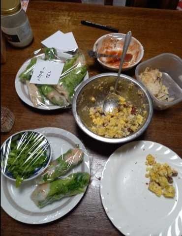 でかい鮭を買ってきて下手なりに三枚おろしに。少し食べてみたけど、土っぽい臭みがあっておいしくない。子が調べてくれて、塩振ってレモン汁でふいたりしたけど改善せず、昆布じめをやってみる。昆布ないから買ってきて、お酢とお酒で表面ふいて鮭をはさみラップして冷蔵庫に。明日まで置いておこう、、、おいしくならなかったらスモークにしようねって。だいたい、丸々買った鮭がこんなに臭いなんて思わないもん。さばいてそのままおいしく食べられると思ったら臭み消しが必要だったなんて、、、ショックだよー。昆布にはにおいを吸収してくれる効果があるそうだ。昆布のだしではダメだそうだ。何それ。すっご。🟧鮭は昆布に任せるとして、、、今日は生春巻きにした。エビが足りないかな。エビとレタス、ニラ、パクチー、カニカマを入れてる。エビがなくなったら鶏むね肉。昨日のさつまいもサラダとおこわも。ライスペーパーって前よりも薄くなった?水ですぐ戻るけど、伸びて巻きにくいな。。スイートチリソースにとても合ってグッド👍️🟧子といろんなことを話した。移民のこと、、、とか?ルールをちゃんと決めないうちにたくさん来てもトラブルになるだけだよねって。土葬どうするんだろ。。。問題ない方法はありそうだけどね。一部の地域に限定するわけにもいかないよね。他の人の迷惑にならなければ、全然いいと思うけどな。増えたら問題をなんとかするんじゃなくて、最初に考えとくのが一番いいことだよね。ま、難しいんだろうね。力尽きました。寝ます。