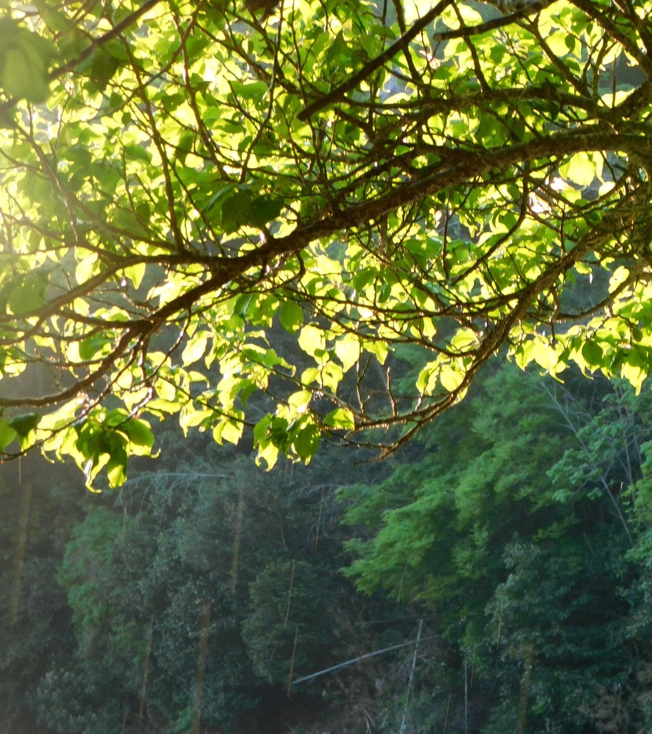 晴天の日、梅の木の下に何気なしに入ると、顔に雨より小粒があたる、ある角度で見ると梅の木から、ごく細い雨みたいなものが、何とかカメラでとらえる事が出来ました。さてこの現象は?解らん?