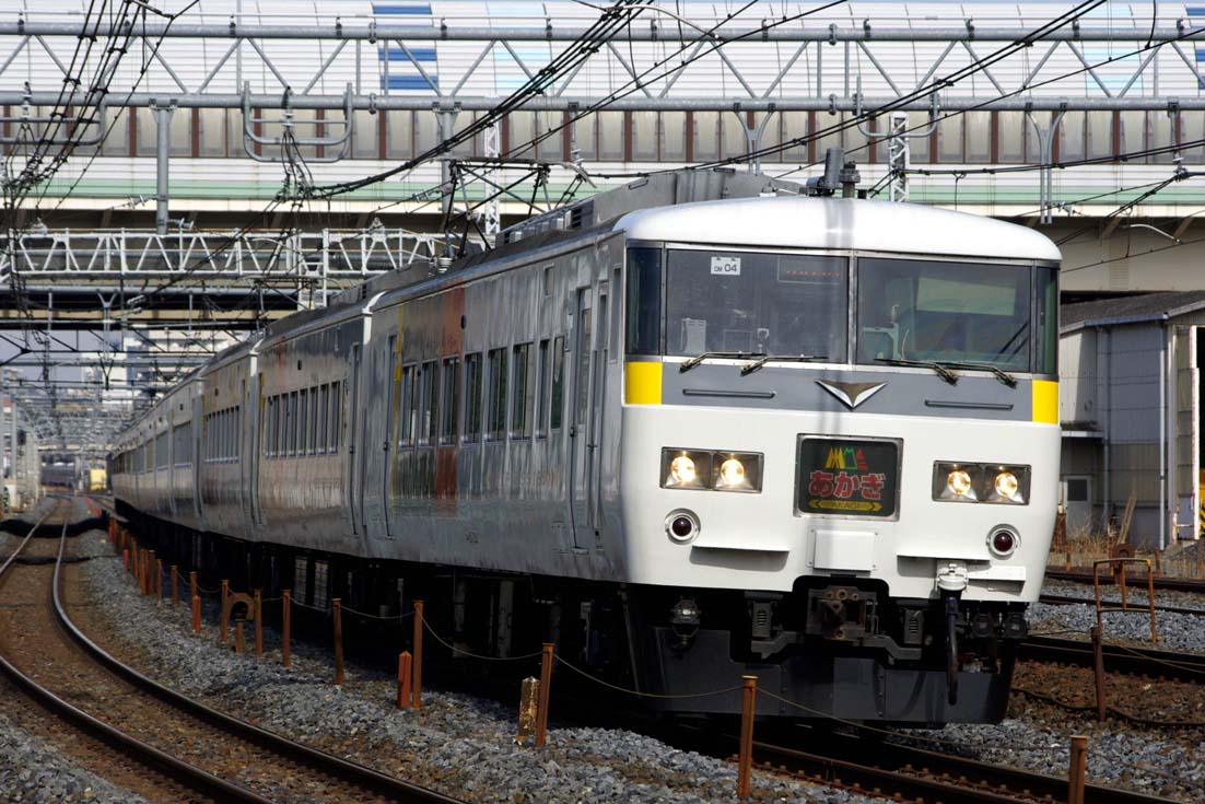 平成25年3月のダイヤ改正において、田町車両センターの廃止によって異動してきた185系も加わり、非常に変化に富んだ「あかぎ」が見られるようになりました。