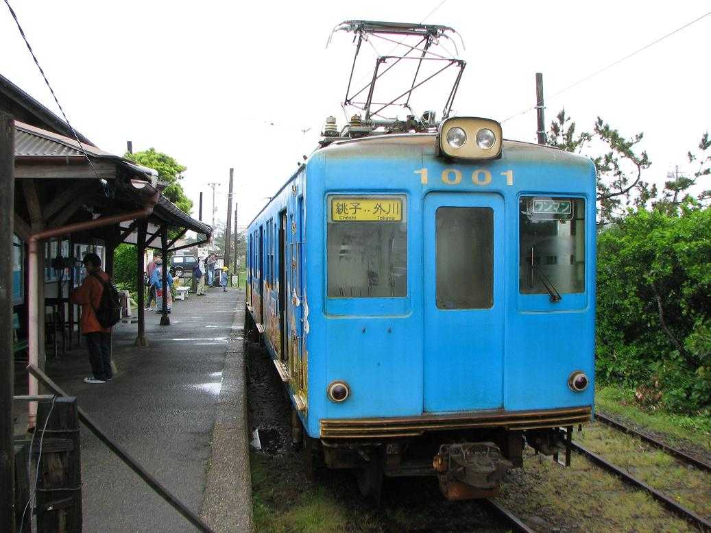銚子電鉄 デハ1000形:デハ1001銚子電鉄デハ1000形は、元営団地下鉄銀座線で使用されていた車両です。1994年(平成6年)に入線し、平成27年1月にデハ1002が運用を終えて除籍されましたが、残っていたもう1両のデハ1001が平成28年2月28日の運転をもって運用を終えました。同車が銚子電鉄に導入されてから1度しか訪問しておらず、当時の旧型ばかり着目し、1000形はあまり撮っていませんでした。天気も悪くて写欲が湧きませんでしたが、復路に1区間のみ乗る機会がありました。撮影は、平成20年5月3日、外川駅にて。外川駅に停車中のデハ1001。当時は桃太郎電鉄の塗装となっていました。経営状況の厳しい同鉄道が、ハドソンの援助を受けて実現した。楽しいラッピングですが、オリジナルの良さが全く無くなり、鉄道ファンとしてはあまり魅力を感じません。車内もとにかく桃太郎電鉄一色と言ったところ。このような車両に乗っても落ち着かないですが、もし支援がなかったかなり荒廃したまま運用されていた可能性もあります。この時は2連運用となっており、デハ702と手を組んでいました。同じ鉄道の電車ながら連結器が統一されておらず、中間連結器によって連結され、さらには総括制御が出来ないため、2名の運転手による協調運転となっていました。平成24年8月からは銀座線使用時と同じカラーとなって活躍していましたが、車内は桃太郎電鉄のままであったようです。日立電鉄の廃止以降、銀座線用車両の活躍する最後の路線でしたが、伊予鉄道からの譲渡車に後進を譲り、引退となりました。デハ1001は、昭和の杜博物館で保存されているそうです。