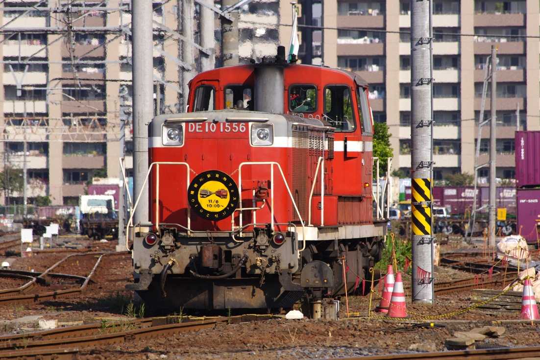 JR貨物 DE101556DE10シリーズで、今回はDE101556号機をご紹介したいと思います。平成22年11月6日 隅田川駅にて(公開)平成23年10月15日 大宮車両所にて1556号機は、日本車輛製で、昭和47年2月1日に門司機関区の配置の九州育ち。門司~香椎機関区と国鉄時代を過ごしましたが、民営化前に上京して品川機関区配置となり、川崎を経て新鶴見に定着しました。写真は、おおみや公開にて検査に来ていた同機が展示されたもので、まだ整備前の様です。国鉄時代の九州機のように、ナンバー部分が最後まで赤だったようですね。同機は、平成27年度に廃車になってしまったようです。