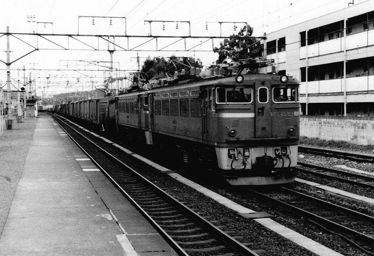 ED75牽引貨物列車:東北本線(国鉄~JR)平成30年1月2日、東北本線黒磯駅における交直流切替が地上方式から車上方式に切り替わりました。母親の田舎が南東北である私からすれば、毎年2~3度は通う東北本線で、黒磯駅と言えば関所のような存在でした。これは、普通列車の乗り換えばかりではなく、必ず停車する急行列車でも、通過となる特急列車にしても駅又は駅構内で受ける儀式であり、このことは幼少の頃から身体に叩き込まれてきたものでした。そんな黒磯駅でしたが、全国で一般的な駅間による車上切替方式へと移行され、車内灯が消え静寂を味わい、パンタの上げ下ろしと同時に電気が点灯してコンプレッサがフル回転して唸るような体験を味わうことができなくなってしまいました。今回は、ED75が牽引する貨物列車に及び黒磯駅に係るものとし、走行区間については東北本線全線としました。昭和58年10月5日 黒磯駅にて ED7583他重連牽引 上り貨物まずは国鉄時代。黒磯駅5番線脇の上り側線に停車中のED75重連牽引の貨物列車。当時だと、EF15かEF60、或いはEF65へのバトンタッチとなるシーンです。本来なら出発待機は直流機が連結されていますが、到着してすぐに撮影したものかもしれません。83号機は、民営化直前の昭和62年2月6日付で廃車となっています。昭和58年10月5日 黒磯駅にて ED7578これも同日に黒磯駅で撮影した78号機。おそらく、上の写真の側線のさらに隣の留置線で留置中の78号機と思われます。本来、交流機の留置場所は仙台寄りにあり、ここに交流機を留置しているところはあまり見たことが無いような気がします。所属札が「長」になっており、当時の長町機関区所属を表しているのも懐かしい。78号機も、民営化直前の昭和62年2月6日付で廃車となっています。昭和59年10月14日 矢吹~泉崎間にて ED7516他重連牽引 高速貨物列車59・2の貨物大合理化後に撮影したものですが、先頭は若番の16号機であり、運良く即廃車を免れたカマでしょうか?後に連なるはコキ50000を中心とした高速貨物列車で、車掌車連結廃止前ということもあり、コキフ50000が連結されています。16号機も、民営化直前の昭和62年2月7日付で廃車となっています。昭和59年10月14日 矢吹~泉崎間にて ED75704牽引 ワム貨物列車こちらも同日に撮影したもの。本来なら奥羽本線や羽越本線でしか見ることのできなかった700番台が牽引しています。59・2大合理化で初期車を大量に整理したため、車齢の若い700番台も広域で異動したようです。後まで写っていないので詳細は分かりませんが、ワム80000ばかり組成されていますので、紙輸送の列車かもしれません。704号機は、JR貨物に継承され、平成8年3月29日付で廃車となっています。昭和62年8月 撮影場所不詳(多分渋民辺り) ED75143他重連牽引 コンテナ列車こちらはJR化間もない頃に撮影した写真で、かなり北部になります。列車は短編成ながら重連牽引となっており、先頭の143号機にはJRマークが貼ってあります。殆どのカマはJR移行時にステッカーが貼られたと思っていたのですが、次位の機関車(カマ番不明)には貼られていないようです。編成の中間にはコキフ50000が連結されていますが、既に一部の長距離列車?を除いて列車掛の乗務は廃止されており、しばらくの間はコキ代用として使用されていたようです。平成2年7月1日 高久~黒磯間にて ED75143牽引 コンテナ貨物列車さらに南下して高久駅に近いところ。今の輸送と同じようなスタイルですが、この列車にはまだコキフが連結されているようです。長距離の直行コンテナ列車では、少しの間だけ車掌業務が残っていたような話を聞いたことがあります。143号機は、JR貨物に継承され、平成20年4月1日付で廃車となっています。平成2年7月1日 矢吹~泉崎間にて ED75120牽引 車扱い貨物列車再び南部地域での撮影。ワムとタンク車が連結された短編成の車扱い貨物列車のようです。JR化直後はまだ車扱いの特殊なタンク車を使用した列車が多数設定されていましたが、徐々にトラック輸送への切替が進み、今では石油類やごく一部を除いて殆どが廃止又はコンテナ輸送へと切り替えられてしまいました。120号機は、JR貨物に継承され、平成12年8月2日付で廃車となっています。平成23年7月8日 須賀川~安積永盛間にて ED751029牽引 コンテナ貨物列車こちらは今と全く同じようなスタイルのコンテナ列車です。1000番台を使用していますが既にP型の役割は終わっていますので、一般型と700番台は共通であったと思います。それでもまだEH500は製造数が少なく、ED75が主力の時代でした。1029号機は、JR貨物に継承され、平成18年3月30日付で廃車となっています。EH500が台頭するまでは殆どの列車が黒磯駅で機関車交換を行い、EH500へ完全に移行された後もEH500の走行距離を抑えるため交換作業を残していました。しかし、津軽海峡線における運用をEH800に移行したことによりその調整も解除され、EH500のスルー運転化が可能に。今回の切替方式の移行もこのことによって実現できたものと思