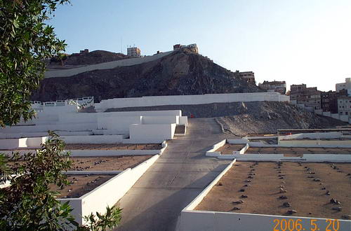 おそらくこれはハズラテモハムマドの叔父様(初代イマームアリのお父君)とその親族たちのお墓であったと思います。メディナにあった、4人のイマームたちの墓地も中がとれなかったのですがこんな感じでありました。ここもやはり山を切り崩して作ってある感じがします。
