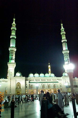 広くて大きなイスラム教会の一角にこの緑の屋根の建物があります。ここがハズラテモハムマドがご使用になられた入り口などがありここで礼拝や宗教的なお話をなされたといわれています。この緑の屋根をはじめてみて瞬きしない間にお願いしたことは必ず叶うとかいうみたいですが、私はそんなことを気にしている心のゆとりがありませんでした。現在この教会は男女が使用するところを厳しく取り締まれていて多々不便に感じることがありました。でも中は本当にだだっ広いという言葉がよく合うくらい広くてたくさんの人々が集ってもまだゆとりがあって中はとても涼しくて快適に礼拝などをおこなうことができました。ただしズィヤラトするときはどこでも同じように押せ押せおしくらまんじゅうの状態でしたけれども、、、、。