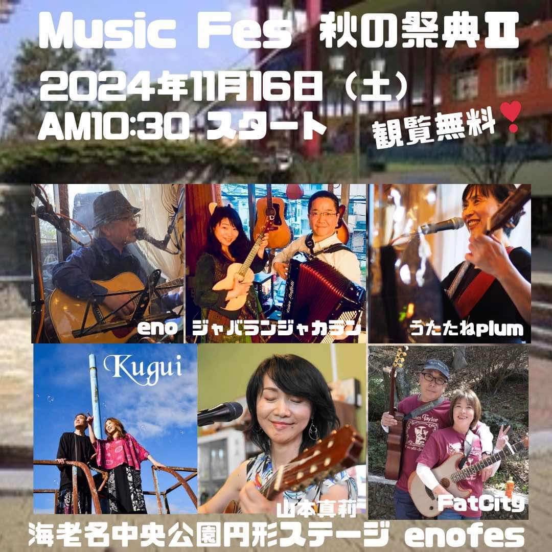 明後日11/16(土)はこちら。海老名駅南口からすぐの海老名中央公園での野外ライブ。観覧無料です🎵お天気も大丈夫そうですね。いろんな音が待ってます。ぜひ〜😃私は13時過ぎ頃からの予定です。
