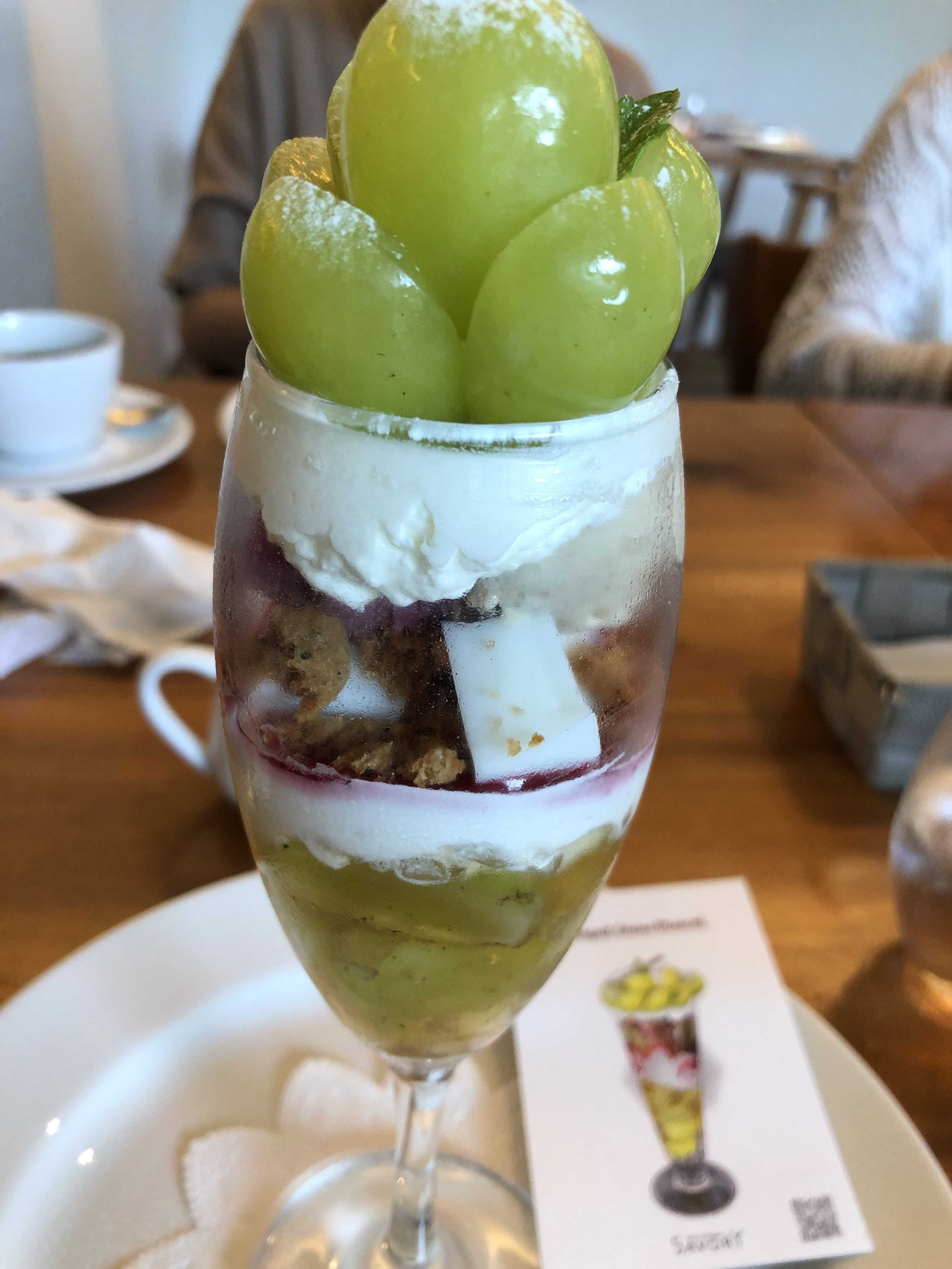 きょうは友人たちとランチに行ってきましたいろんなお料理が出てとてもおいしくいただきましたがデザートに出たシャインマスカットのパフェは最高でした色んな味が楽しめてこれはぜひまた食べたいと思います