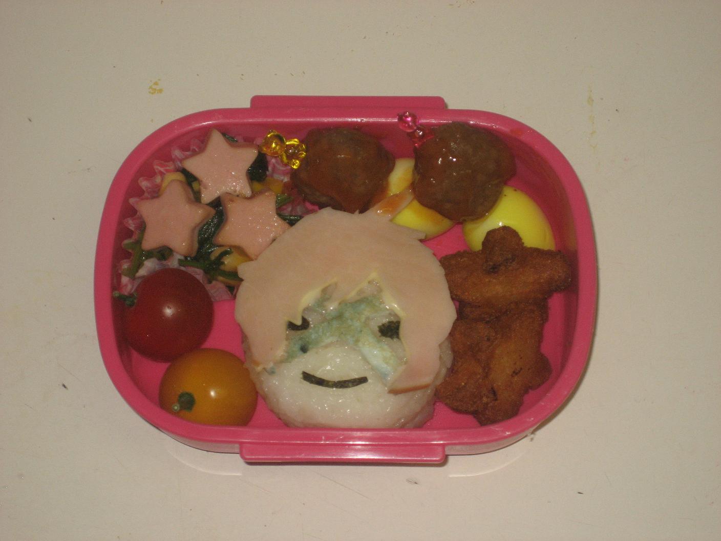 レヴィに「キュアパッションのお弁当にして」と言われ、 悩みに悩んだ挙句 ちょっと手を抜いて作ったら 初めて 「ちょっと違う。。。」 と言われました。。 まぁ、たしかに。。。( ´Д`)=3 まだまだ修行が足りないでござる。