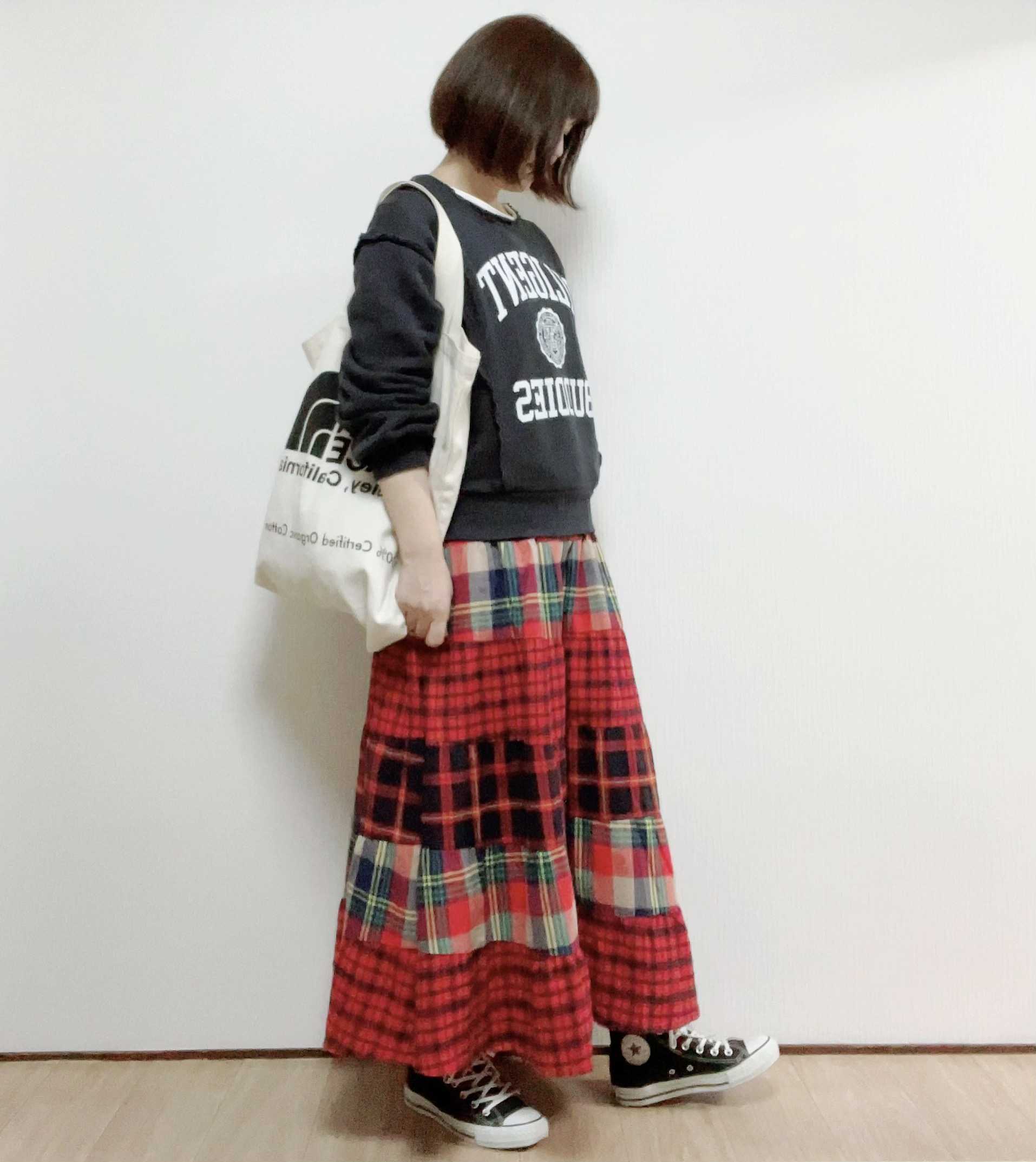 PAOPAO オリジナル 横パッチワーク 超フレアー ロングスカート【フレアース...