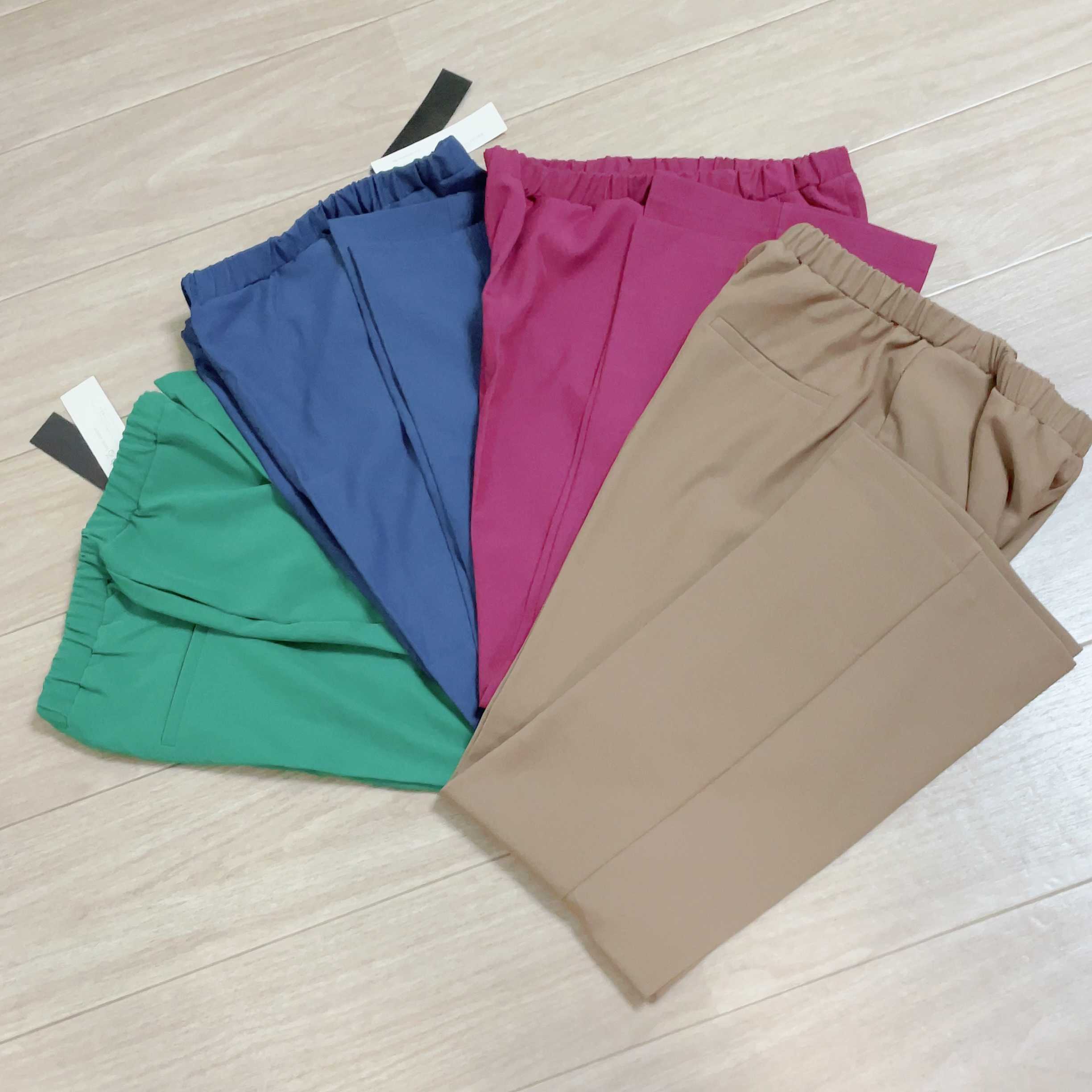 セミフレア パンツ レディース ロング丈 パンツ ストレッチ ウエストゴム ボト...