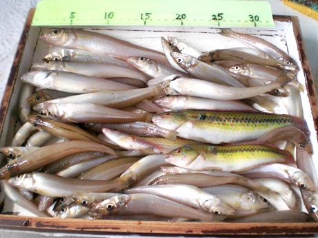 こんばんは。8月30日の日記です。釣果アップが遅れました。決して遊んでいたわけではありません。裏方の仕事をしていました(言い訳がうまくなりました)早速、本日の釣果をご報告しますキスは絶好調と言えるでしょう。寝屋川のHさんが52匹。21cmを頭に平均サイズは15、16センチでした。ベラも19センチを含む3匹。7時から13時迄の釣果です。滋賀のTさんは苦戦したとの談でしたがキス45匹 + αHさんとは違い満潮狙いでは食いが良くなかったそうです。場所の違いでしょうか?ちなみにTさんは延竿でした。アジ、サバ、サンバソウは須磨浦漁港が良かったみたいです。夕方近くでは15cm程のアジがひっきりなしに釣れたそうです。又、カワハギを専門に狙う人も増えてきました。胴付、一本針、ハゲ掛けです。胴付、一本針仕掛はキツネ針の1~3号をご使用ください。キス写真は明日、アップしますね。
