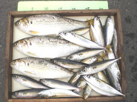 おはようございます。8月23日の日記です。晴れてますけど雨の予報ですのでお客様はめっきり少ないです。いつ、何時、急変するかわかりませんので注意が必要ですね。今日は関西では有名な地蔵盆の日。朝から家の前にあるお地蔵さんの飾りつけ、テント張り等、準備をしていました。将来を担う子供たちがお参りに大勢、来てくれたら嬉しいです。このまま天気が晴れてくれる様にお願いします。さて、釣果情報です。須磨のSさんが釣果を送ってくれました。キスに混じりベラも大漁。まだまだ夏の魚は健在です。餌は石ごかい。Sさんの得意技であるチョイ投げ、延竿を駆使した釣果だと思います。続いてアジ。神戸のNさんアジは良く釣れたとの談。サイズも11cmから15cmほどに成長してまだまだこれからサイズアップしていくでしょう。マアジに混じって青アジも顔を出しましたのでこれから2種類のアジが楽しめそうです。私の経験から青アジは体型がスマートですし、ゼイゴも小さ目ですので呑ませ釣りには適しているとおもいました。サビキにサンバソウ、チャリコ、ベラ、ボラ、シオ、サバも食ってきてます。天気に負けず今日も元気に一日をお過ごし下さい。
