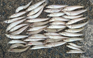 おはようございます。8月12日の日記です朝から雨が降り、釣行を躊躇していた方もおられるでしょうが後には雨も上がるとの予報もあり、盆休みも相まって釣人が来られてます。釣果概要ですが台風後もアジ、サバは好調です。人により匹数に差はありますが30匹以上釣っている人が多いですね。昨日の釣果でアジの写真は神戸のOさん。面倒でトラブルの元の飛ばしウキは不要ですし、短竿でサビクだけですのでファミリーでも大丈夫です。サビキは面白くないという方は餌をつけての一本釣りで釣られてますよ。サビキにはアジ以外にチャリコ、サンバソウ、イワシ、シオなども釣れてますので引きの違いも楽しめますよそしてキスも台風後、雨水が流れ込んで食いを心配していたんですがどこ吹く風で釣れてます。この写真が物語ってます。須磨のキス、健在!釣人は須磨のSさんチョイ投げと延竿での釣果です。釣行時間は9時~12時半餌は石ゴカイです。他にはマダコ、ガシラ、ベラ、ジク/呑ませでの大物狙いサビキでもアジ、サバ以外に多種多様な魚が釣れますのでお子様の自然学習にお勧めです。心配なのは天候が不安定で予報も刻々と変わっていくので予定が立てづらいですね。キスもアジも早朝に行く必要はありませんのでじっくりとお越し頂ければ宜しいかと思います。では、お盆に入り道路は込み合うでしょうが事故にお気をつけてお過ごしください。