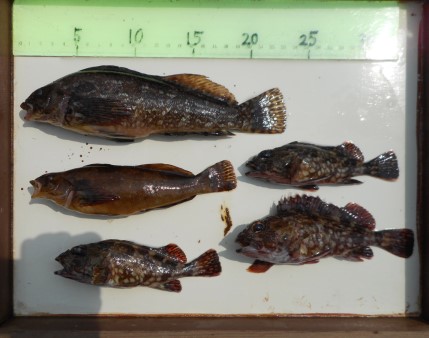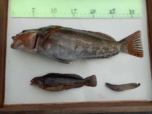 おはようございます。4月26日の日記です昨日に続き、本日も行楽日和に恵まれてます。各地でイベントも開催されており、どこに行こうか迷いますね。魚釣りに出かけられたお客様の釣果をご紹介します。まずは大阪の石井さんが釣果をお持込みくださいました。マコガレイ 30センチキビレ 38、34センチです餌はマムシ。先週は40センチ前後もキビレを5匹だったとの事。当店、近郊の砂浜からの投げ釣りでの釣果でした。続いて三井様須磨海釣公園での釣果とお聞きしました。大きなガシラですね。最後は大阪の南中様真鯛狙いでしたがまあまあの釣果でご満悦。餌は青虫。お忙しい中、釣果をお持込いただき、ありがとうございました。明日は定休日ですが11時まで営業しています。