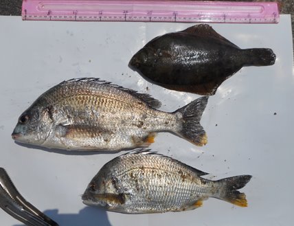 こんにちは(*^。^*)4月27日の日記です。今日も暑い天気になってます。朝、塩水を汲みに行ったところ、各防波堤に数人の人が竿を出していましたね。私は案外と人見知りするので声はかけませんでした。(笑)さて、昨日の釣果情報です。またしても大物が上がりました。釣り人は神戸のサカタ様ポン 35cmメイタガレイ 30cmマコガレイ 22cm場所は近隣の防波堤。餌はシラサ、虫類ここの所、カレイのサイズもアップしてきてますね。又、キビレも変わらず、好調の様です。ガシラも依然、好調が続いてます。西宮のMさんの釣果ですそしてキスが上がりました。写真はありませんが概ね、数は10匹弱です。サイズもまちまちで不揃いです(泣)ここ数日、数匹あがっているのは確認済ですが食いが安定性するかどうかはキスに聞かねばわかりません。ポイント、潮が大きく左右してます。そうそう、今日も30cmのマコガレイが上がりました。写真が整理次第、アップします。