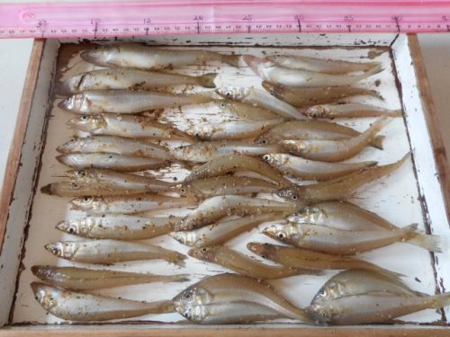 吉川釣具店です8月8日の日記です今日も猛暑でしたね。お盆休みも始まった方もおられるでしょうがこの暑さで移動もままならないでしょうね。どなた様も故郷、旅行でゆっくりとお過ごしください。今日はそんな事もあり、釣り人も今日は少なかったです。ベテランさんがキスの釣果をお持込くださいました。写真がボケてますが撮り方がまずかったのでお許しください。まずは寝屋川の原田さん。そして滋賀のTさんお二人とも暑い中、お疲れ様でした。そして白石様は今回もお嬢様と一緒に来られアジを爆釣だったそうです。では、明日も良き一日でありますように。