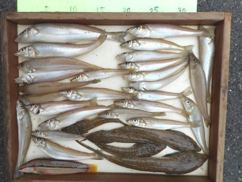 おはようございます8月13日の日記です今年のお盆休みは釣り人は少ないですね。やはりお盆は殺生してはいけないと言うこともあります帰省、各種行事もありますからね。そんな中、釣行された方はまずまずの釣果を上げておられます。アジは写真はありませんが昼間でも須磨浦漁港の内側で釣れてました。アミエビを撒いたら群がっていたそうです。ただ、漁港の外側は食ってこなかったそうですので微妙な潮の影響があるのでしょうね。続いては大阪の三木様サヨリの35cmを30匹、釣り上げました。少し、投入して引き上げる時のスリルを楽しんだそうです。サヨリ独特のバラシが多いのは百も承知の上でのこの釣果はお見事です。キスの釣果は安定してます大阪の三好様親子数は数えられませんでした。(すみません、本当は数えませんでした)いつも安定して数釣りをされるベテランさんです。続いて滋賀のTさんチョイ投げと延竿での成果です。チャリコの餌取りに邪魔されて苦労されたと言いながらも結果、キス23匹客観的に見て十分な成果だと思うのですがご本人にとっては今までの実績がありますので不満が残るでしょうね。最後は寝屋川の原田様遠投で23cmのサイズも含めて、結果27匹の釣果でした。平均サイズは15cmですので本当なら満足ですが23cmが居ますのでどうしても小さく見えるのは仕方が無いですね。雨が降り、今日は暑さも和らぎ、クーラーなしで過ごせてます。早く、過ごしやすくなってほしいですね。雨の後は塩分濃度も海水温も落ち着き、爆釣が期待したいものです。では、体調管理を万全にしてお盆休みをお過ごしください。
