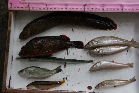 おはようございます。8月7日の日記です。昨日はジムの知人が臨時収入があり、焼肉屋で昼間から宴会でご馳走になりました。暑い時のビールののど越しの良さも相まって何人前、食べたのか記憶にありません。でも、実はホルモンは嫌いなんです。(ほる物のイメージがあって。。)だけど、口にしたら案外と抵抗感なく食べられました。旨いとは思いませんが癖になるかもしれません。好き嫌いの一つの煮つけの魚の食わず嫌いも直さなくてはなりません。これは魚の臭み消し、味付け、新鮮さが多いに左右しているのではと思いますがね。さて、今週の釣りものです。特筆する事はありませんが安定している魚は■キス、ベラ(チョイナゲ、遠投で数、型は異なります)型が13センチ~25cm。多い人で数は50匹餌は石ゴカイ、青虫。仕掛けは流線6~7号■アジ、サバ釣果は一時の3桁はありませんが50匹前後の釣果に落ち着いてます。サイズもアップしてますので釣り応えも良いですね。サビキは3~4号が良さそうです。■ガシラ夕まず目がねらい目ですが日中でも可。餌はシラサエビがベストです。■アナゴ大きいもので60~70cm。こんな所に居るのと思う程、防波堤まわりにいますので色々と投げ分けてください他の魚も釣れるので餌は青虫がベストです■ノマセ釣りアジ、キスなどを餌に遊び心で呑ませ釣りはいかがですか?コチ、青物、スズキが掛かるかも。。■サヨリサビキ釣りの撒き餌の寄ってきており、サビキにも掛かりますがサヨリ仕掛けで釣るのが効率は良いです。では、明日も良き一日でありますように。