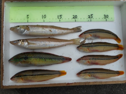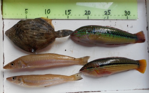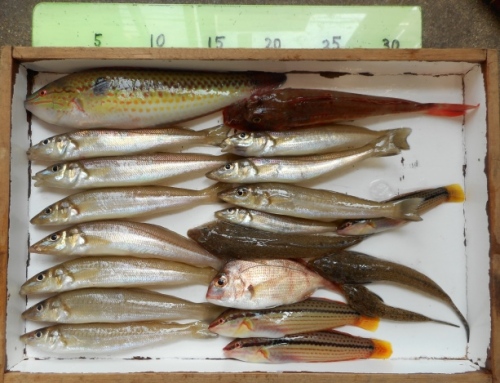 こんばんは吉川釣具店です。10月31日の続報です。ベテランのお客様が目を見張る程のキス、ベラの良型を上げてくれましたのでアップします。前置きは抜きにして本題だけをいつも通りに真面目に書きます垂水のてるさん顔写真は固辞されたのですが横からパチリ。肖像権に問題アリかも?キス、カワハギ、チャリコ、ハゼ、良型のベラが目立ちますね。食いが今一だけどブログ用にとお持込くださいましたがご謙遜ですよ続いて神戸から来られたキタタニ ヒロキ様他の写真を撮っててお話しを伺えなくて済みませんでした。20cmのキスはさすがですね。そして神戸の三井様サイズは21cmありました。さすがの釣果に私は何も言うことはありません。石ゴカイの件ではご迷惑をお掛けしました。そして滋賀から来られたTさん。いつもの釣りスタイルで盛り沢山の釣果。いつもながら恐れ入ります。抜きん出た一匹はさすがに目立ちますね。最後は寝屋川の原田様朝は冷え込みましたが体調は戻りましたでしょうか?どうか無理をなさらないでご自愛くださいませ。以上、10月31日の釣果続報です。皆さん、お忙しい中、お持込ありがとうございました。