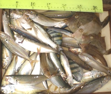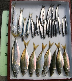 吉川釣具店です。おはようございます。金曜日はフィットネスクラブでバーベルを持っての筋肉トレーニング・プログラムに参加しています。激しいビートの音楽に合わせて胸、背中、下半身、腹筋、二の腕を鍛えるんです。軽目のウエイトで回数を多くやるので実際は筋肉が付くと言うよりも引き締める程度の運動ですね。年甲斐もなく、派手な服を着て隅っこの方で小さくなってますが十分に快感を味わっています。さて、動的な今週の釣り情報ですがアジ、イワシ(マイワシ、ウルメイワシ、カタクチイワシ)が回遊して千守、須磨浦漁港は賑わいを見せてます。24時間、釣れ続く事は少ないですが回遊があった時に手返し良く釣れば3桁も可能です。参考迄にアジは底近く、イワシは表層近くを泳いでますので。一昨日の南東風で底をかきまわし、適度な濁りが吉と出ると信じています。釣れたアジ、イワシで呑ませ釣りも思わぬ大物が掛かる可能性もあるので遊び心で捨て竿を放っておいたらいかが。キスはピンギスが多いですが多い人で40~50匹を釣り上げる猛者もいます。ただ、ポイント選びが重要な要素になります。遠投では良型も上がりますがこちらは今の所、10匹前後といった所です。投げ釣りでキス以外にベラ、カワハギ、サンバソウ、コチ、そしてチャリコも掛かります。際、穴釣りではカワハギと共にガシラ狙いの人が多くなってます。カワハギの餌は虫類、シラサガシラはシラサ、オキアミが一番です。夜釣りでは太刀魚、ガシラ、アナゴです。コロッケサイズのアオリイカも朝夕を中心に釣る人も増えてきてますよ。多種の魚が釣れてますので何を釣るか悩みますね