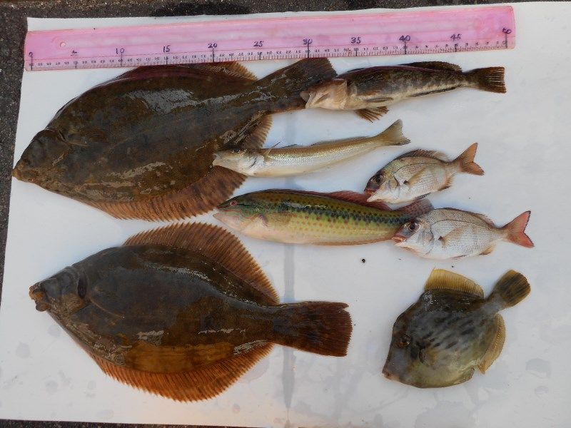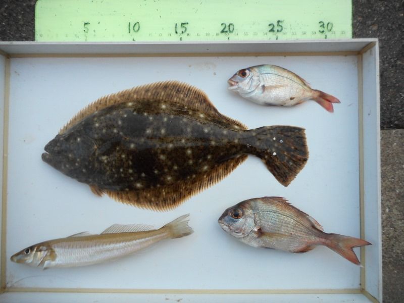 吉川釣具店です気温は低くなり、浅場は気温の影響を受けてますが深場はまだまだ水温は低くはなっていない模様です。それが証拠に釣った魚は生暖かいですし、秋の魚もまだまだ元気そうですから。秋の魚を狙うのがセオリーと思いますが冬の魚も姿を現していますので何を狙うかは釣り人の好みで狙ってください。。では、今週の狙いですが■サビキでアジ、イワシが1週間程前から又、釣れだしました。地元の奥様が釣果を聞きつけて再び竿を出されています。回り魚ですので時間は不定ですが日中でも食ってきますので準備だけはお忘れなく。昨日はサビキにエサ付けでアジ、そしてキスも釣られていました。後ほど、写真はアップします。■カレイ、カワハギ、ベラ、チャリコも狙いです。数は少ないですが良型が上がりますのでたとえ1匹でも重量感が違い貴重ですよ。チャリコも20cm前後でチャリコではなく小鯛と呼ぶのも釣れてますので侮れません。■面白い所ではヒラメ、ホウボウ、ハネも竿を揺らしてくれます■キスは水深のある所がポイントと思いきや思いもかけず、浅瀬でも釣れてますが予想が付きません。 サビキでも食ってきてますし。。。 潮とポイントが勝負ですがこればっかりは体が一つですので過去の情報と感、運任せ?■夜釣りで太刀魚も上がりますがこれも計算がつきません 釣れたり、釣れなかったり・・・(泣)■夜釣りの投げ釣りでカレイ、キス狙いで良型が狙えます。 又、際、ウキ釣りで探ればメバル、ガシラ、タナゴ、グレ、アジが面白いでしょう。色々な事を書きましたが不明な点、詳細は当店でお尋ねください。景気付けに最近の釣果写真の抜粋もアップしておきます。