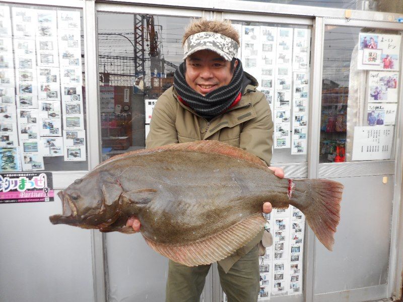 吉川釣具店ですおはようございます。昨日は数十年前からの元会社の仲間と箕面温泉スパーガーデンに出かけてました。ランチバイキングのメニューもレベルが高いし、温泉もほっこり、そして大衆演劇で泣き笑い、一年の垢を流してきました。商売をサボっていた時にも関わらず、今年最高の獲物が須磨であがりました。75cm、4.3Kgのヒラメです釣り人は須磨の春風様釣り場は近隣の防波堤からの投げ釣り。餌は青虫でした。おそらくキスかハゼか小物が釣れてそれにヒラメが食いついたのだと想像しますこんな大物が食いつくのも稀ながら釣り上げるのも至難の技だったでしょう。ビッグなクリスマスプレゼントに心が躍り、で昨日は眠れなかったのではないでしょうか。おめでとうございます。一方、寝屋川の原田様はキス狙いでしたが惨敗。4月から須磨のキスを追い続けた一年が終盤に差し掛かっていますが、こんなことで挫ける原田さんではありません。おそらく1月に初釣りに来られて静かに次のシーズンに向けての総括をされることと思います。お疲れさまの言葉は1月まで控えておきます。後は後日談で写真はありませんが須磨浦漁港の内でイワシの群れ、居残りのアジが釣れてます。特にイワシは堅いです。興味のある方はお土産にどうぞ。カレイはこれから石ガレイのシーズンになり、期待はまだまだあります。ガシラ、メバル、アイナメはこれからの対象魚NO1になる魚ですね。明日(26日)は定休日ですので朝9時までの営業となりますので宜しくお願い致します。<<年末年始 営業のご案内>>12月31日 午前中のみ営業 1月1日 休業 1月2日~3日 午前中のみ営業 1月4日~ 通常営業<<1月4月14日迄の営業時間のご案内>>朝5時30分~17時とさせていただきます尚、定休日は毎週月曜日 (但し、朝9時までは営業しています)月曜日が休日の場合は翌日が定休日です。