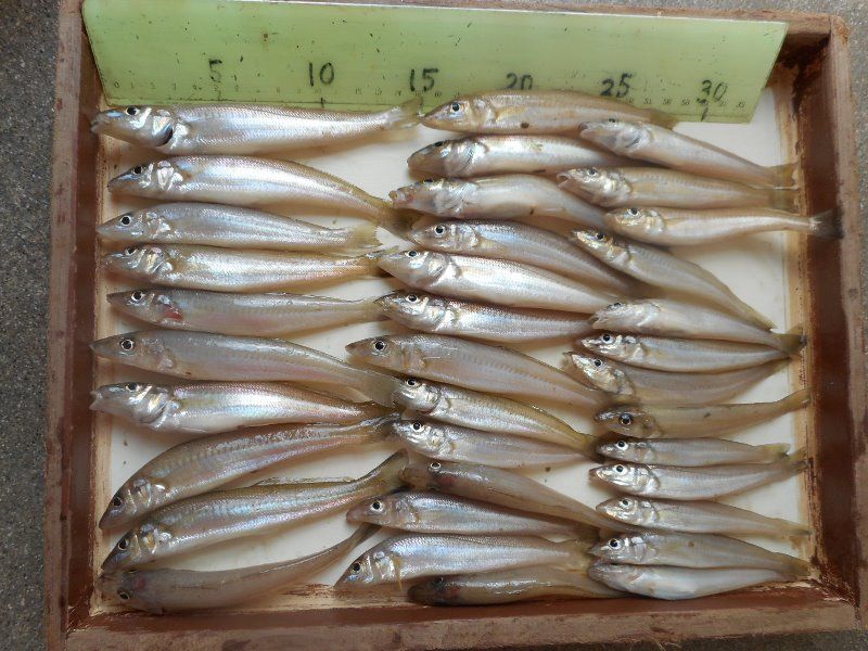 吉川釣具店です8月20日の日記です今日は今の所、アジ釣りのお客様が多い様に感じます。1,2時間 竿を出し夕ご飯のおかず、酒の肴の一品にしようとの目論見でしょうか?釣りすぎて調理の際にほどほどにしけおけば良かったと反省しても時既に遅しです。現地で下処理をしておけば帰宅しても冷蔵庫、冷凍庫で保存できますのでお勧めです。尚、クーラー、氷は勿論、ナイフ、まな板(牛乳パックで代用可)もお忘れなく。暑かった昨日の釣果です。寝屋川の原田様猛暑の中、お疲れ様です。今回もキス24匹と安定した釣果でしたね。石ゴカイのエサで遠投の釣果でピンギス、チャリコはすべてリリース。そして滋賀のTさんも暑い中、お疲れの中、お持込くださいました。釣果はキス:36匹とコチ。キスは延竿で20匹、チョイ投げで16匹水中を見てたらミニ水族園みたいだったと教えてくれました。キスに始まり、カタクチイワシ、エイ、サンバソウ、ハゼ、エソ、そしてチヌ、シオ(カンパチの幼魚)歓迎しない魚も居ますが釣りたい魚、食べたい魚、飼いたい魚がさまざま。時には目線を変えて心穏やかに水中を眺めるのもいいですね。勿論、相手からも見られますけど。珍しくカレイも釣れました。釣り人は白石様いつもはグループで来られてましたが本日はお一人で来られました。チャリコの良型も釣れましたがリリースされたそうです。シーズン外れですが狙いのカレイを釣られて執念が通じたのでしょうか?18日の釣果ですが須磨のSさんがご覧の時間、チョイ投げでの成果です大きいので18cmありました。元はアユ釣り師でして須磨でも長竿で竿捌き、手返し良く、釣られてます。ご覧の通り、近くでキスは食ってきます。平均サイズは25cm。時には20cm超えも。須磨の水質、海底はキスの生息に適しているからでしてこれも自然に感謝、キスに感謝です。あ、アジ、サバも含め、他の魚にも同様に感謝しなければなりません。明日は定休日で朝11時までの営業とさせていただきます。